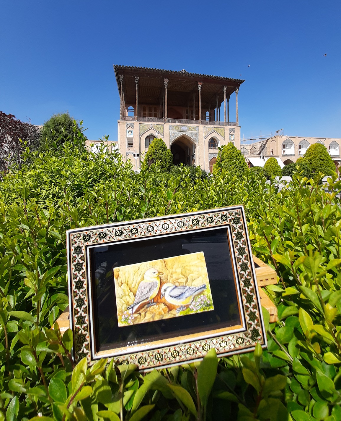 Khatamkari is an inlaying technique, the Persian version of marquetry. It is done by decorating a wooden or metallic object in various designs with very small pieces of wood, ivory, bone, and metal such as gold, silver, brass, aluminum, and twisted wire. Khatmkari is done on the surface of different objects such as jewelry boxes, clocks, photo frames, chessboards, pipes, tables, and a great variety of decorative objects.