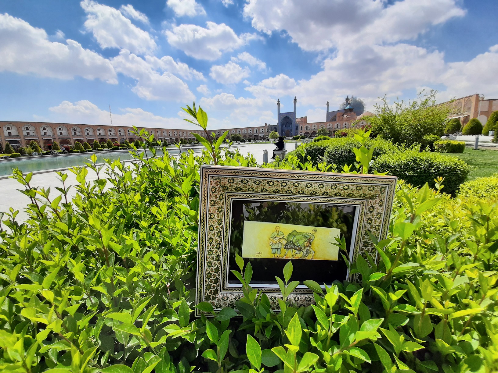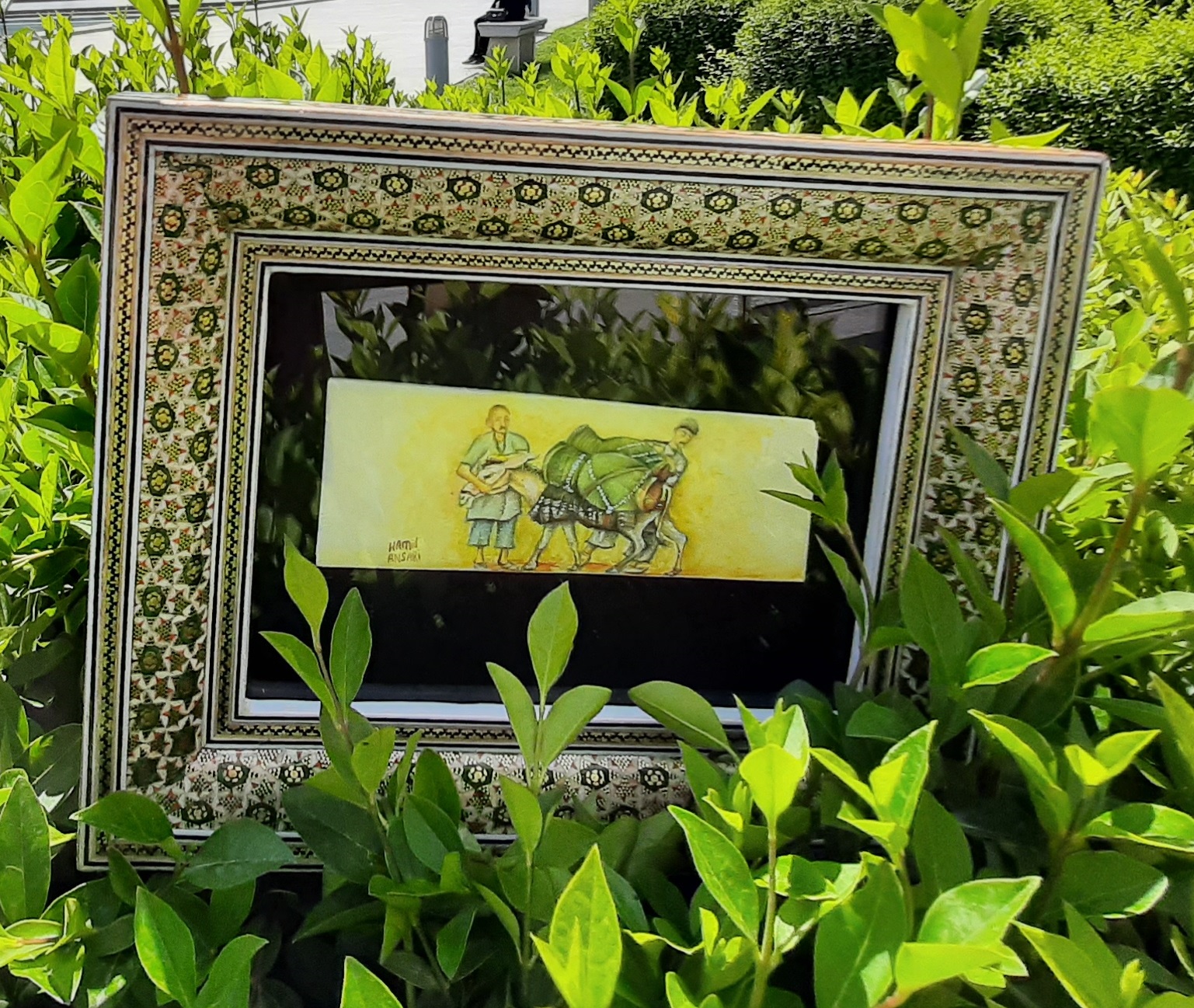 The frame is made with traditional Khatamkari technique in Iran.