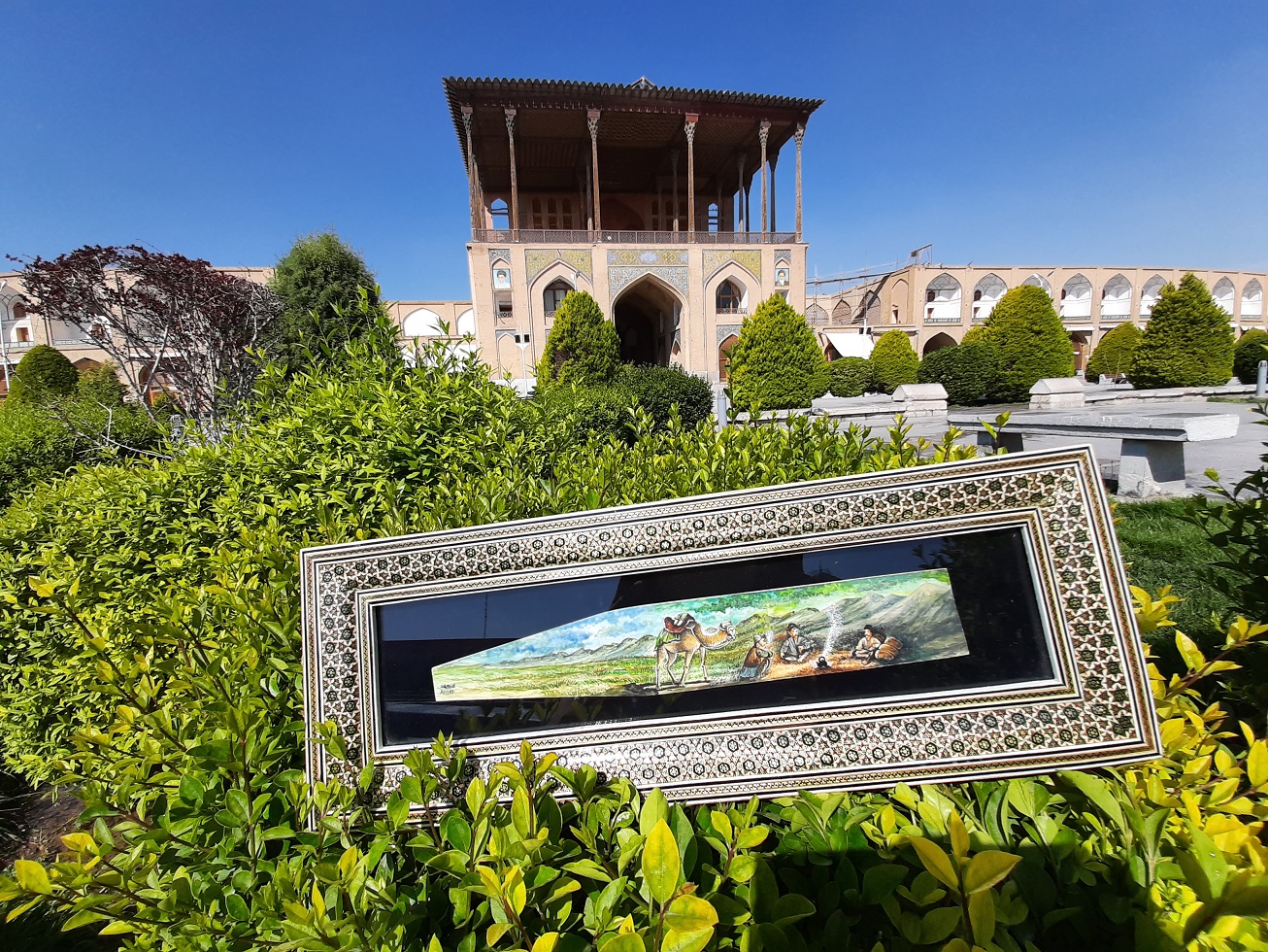 The frame is made with traditional Khatamkari technique in Iran.