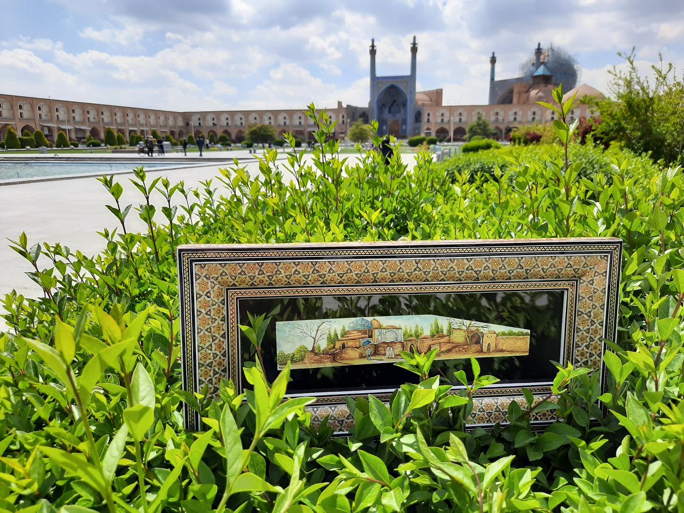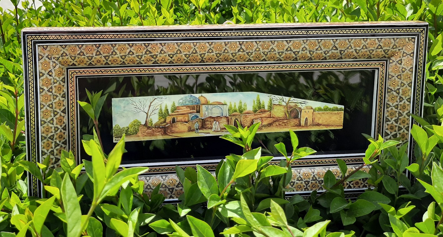 Khatamkari is an inlaying technique, the Persian version of marquetry. It is done by decorating a wooden or metallic object in various designs with very small pieces of wood, ivory, bone, and metal such as gold, silver, brass, aluminum, and twisted wire. Khatmkari is done on the surface of different objects such as jewelry boxes, clocks, photo frames, chessboards, pipes, tables, and a great variety of decorative objects.