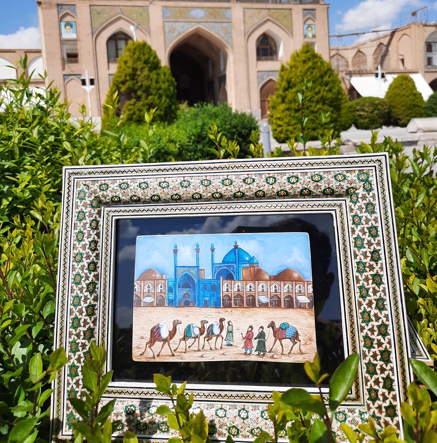 The frame is made with traditional Khatamkari technique in Iran.