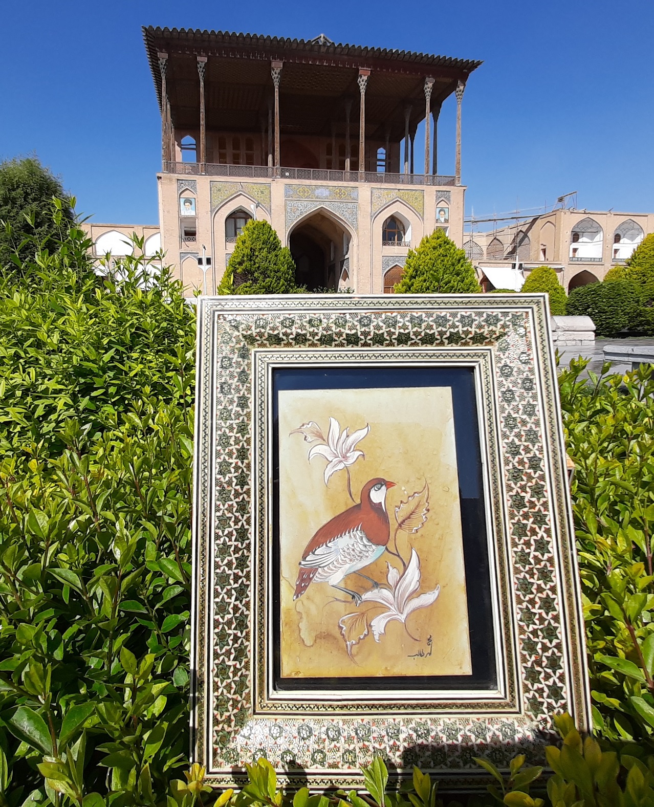 The frame is made with traditional Khatamkari technique in Iran.